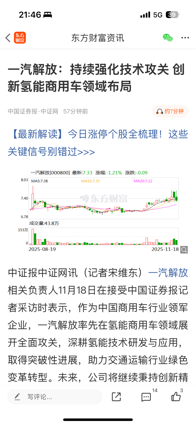 $一汽解放(SZ000800)$ 公司持续强化技术攻关,,终于把股价攻到了15年来历史新低,牛逼pls