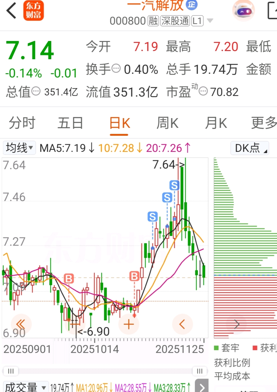 $一汽解放(SZ000800)$ 还好当时跑的快