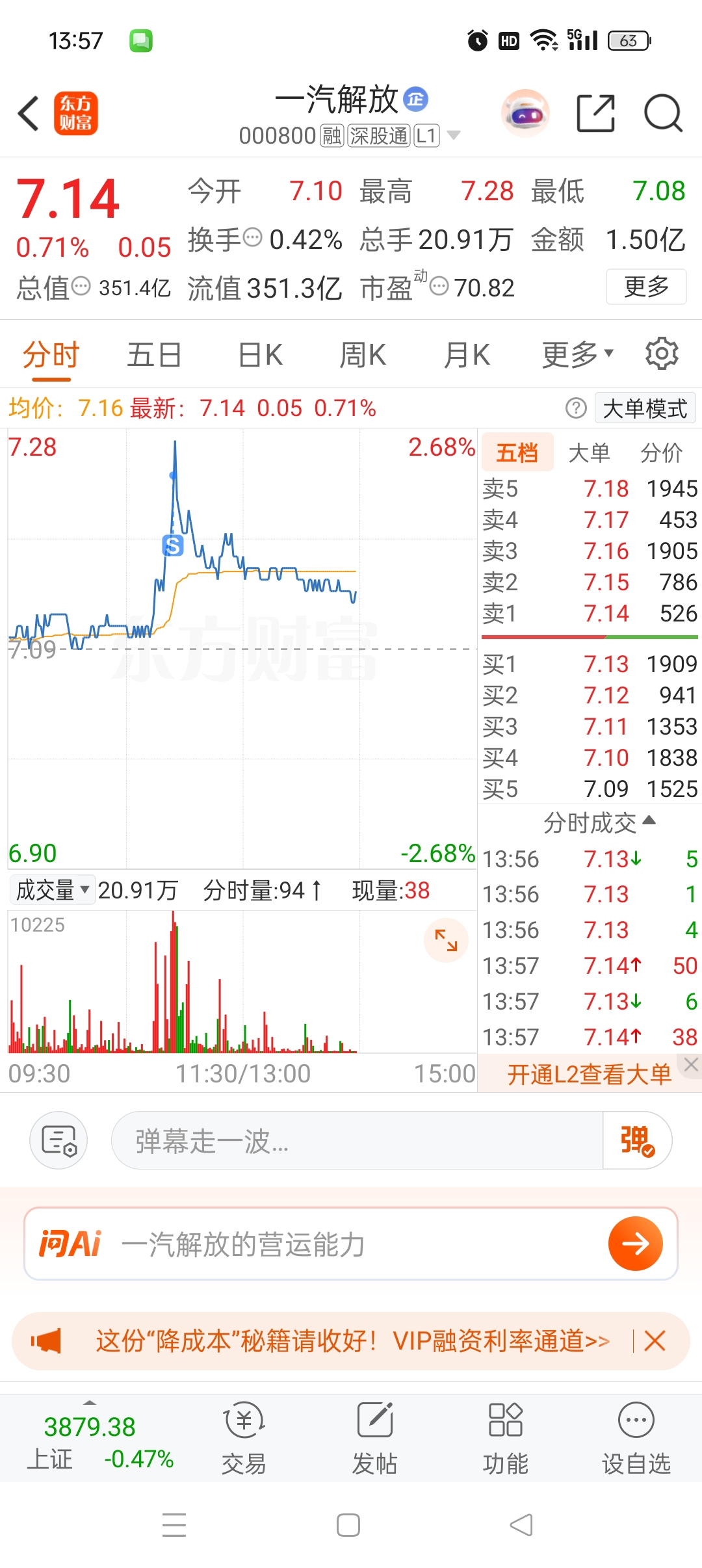$一汽解放(SZ000800)$ 幸好老子毫不犹豫的卖了,没有一次是真正的拉升让我们赚钱,坐等破七再买