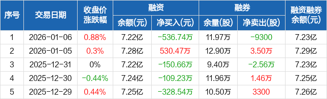 一汽解放:融资净偿还536.74万元,融资余额7.22亿元(01-06)