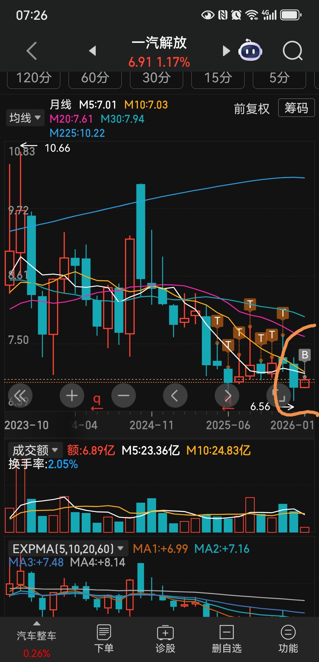 $一汽解放(SZ000800)$ 下图月线形态看股价昨天也就最高这样了