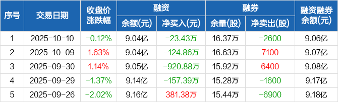 四川九洲:连续4日融资净偿还累计1226.56万元(10-10)