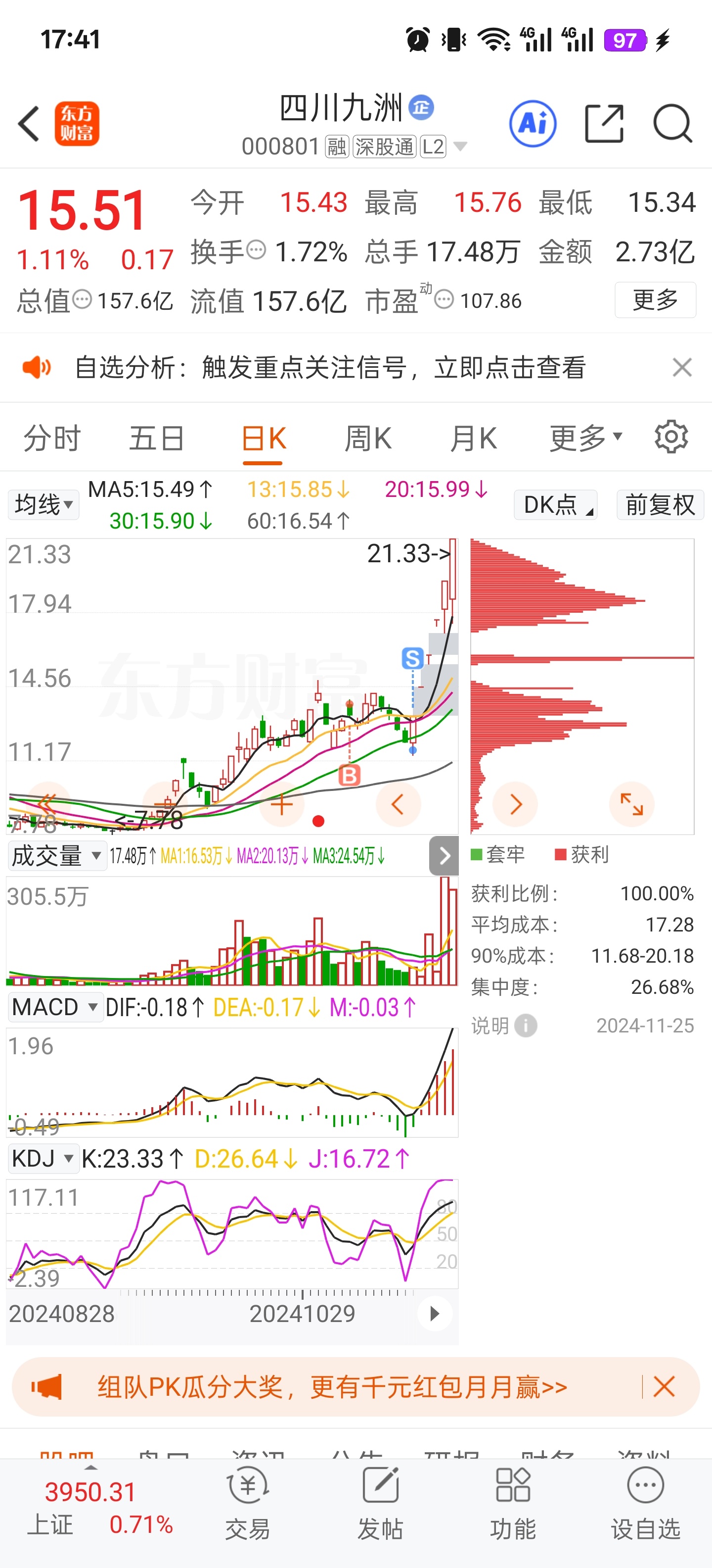 $四川九洲(SZ000801)$ 思绪拉回到了去年的11月18日,当时两天吃不下饭发誓总不再碰这个股