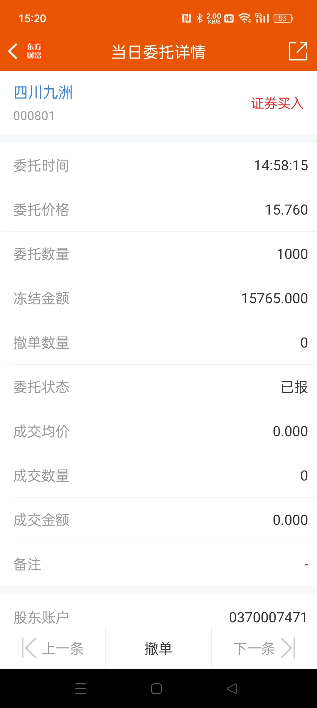 $四川九洲(SZ000801)$ 一千股都不让我买