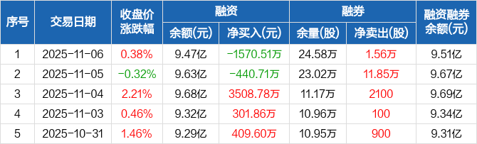 四川九洲:融资净偿还1570.51万元,融资余额9.47亿元(11-06)