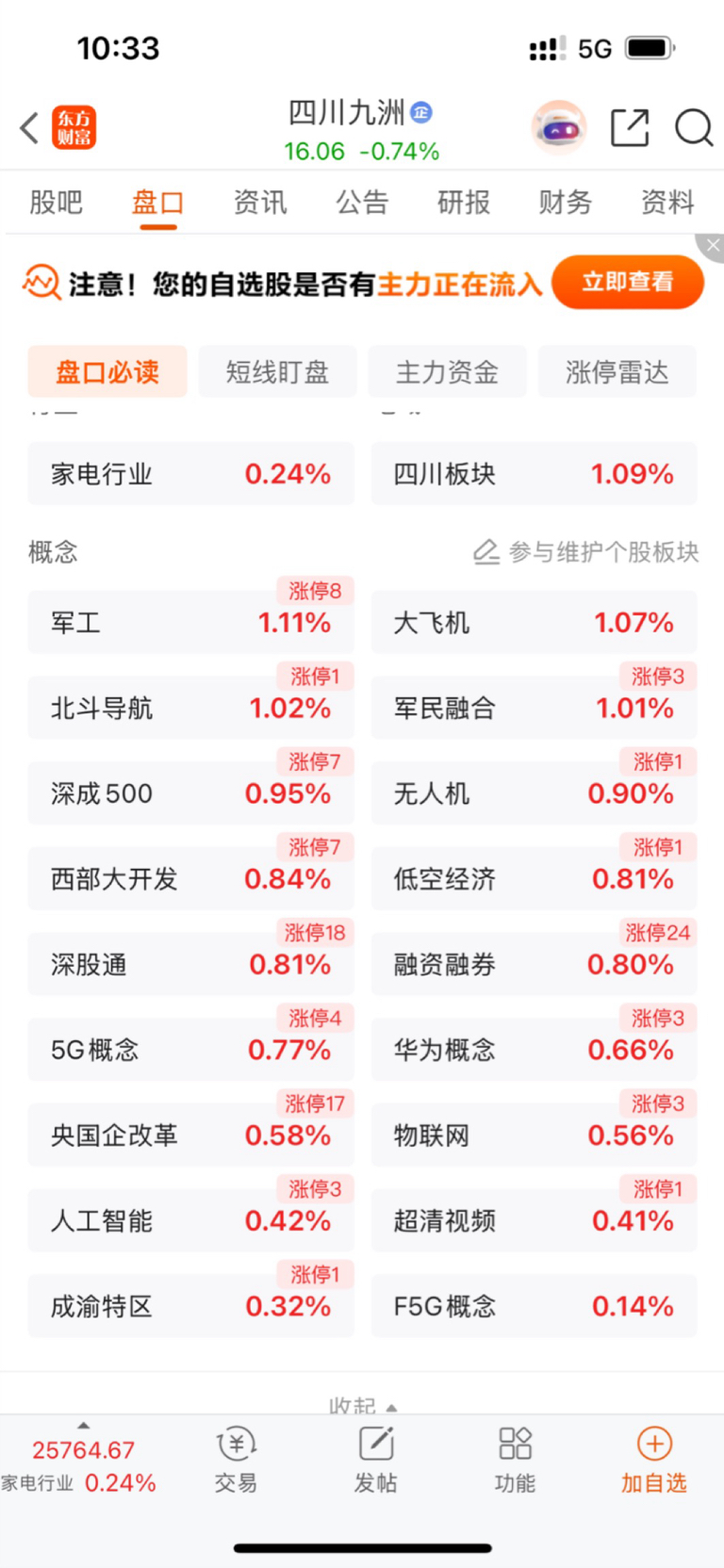 $四川九洲(SZ000801)$ 我想问为什么你是绿的。