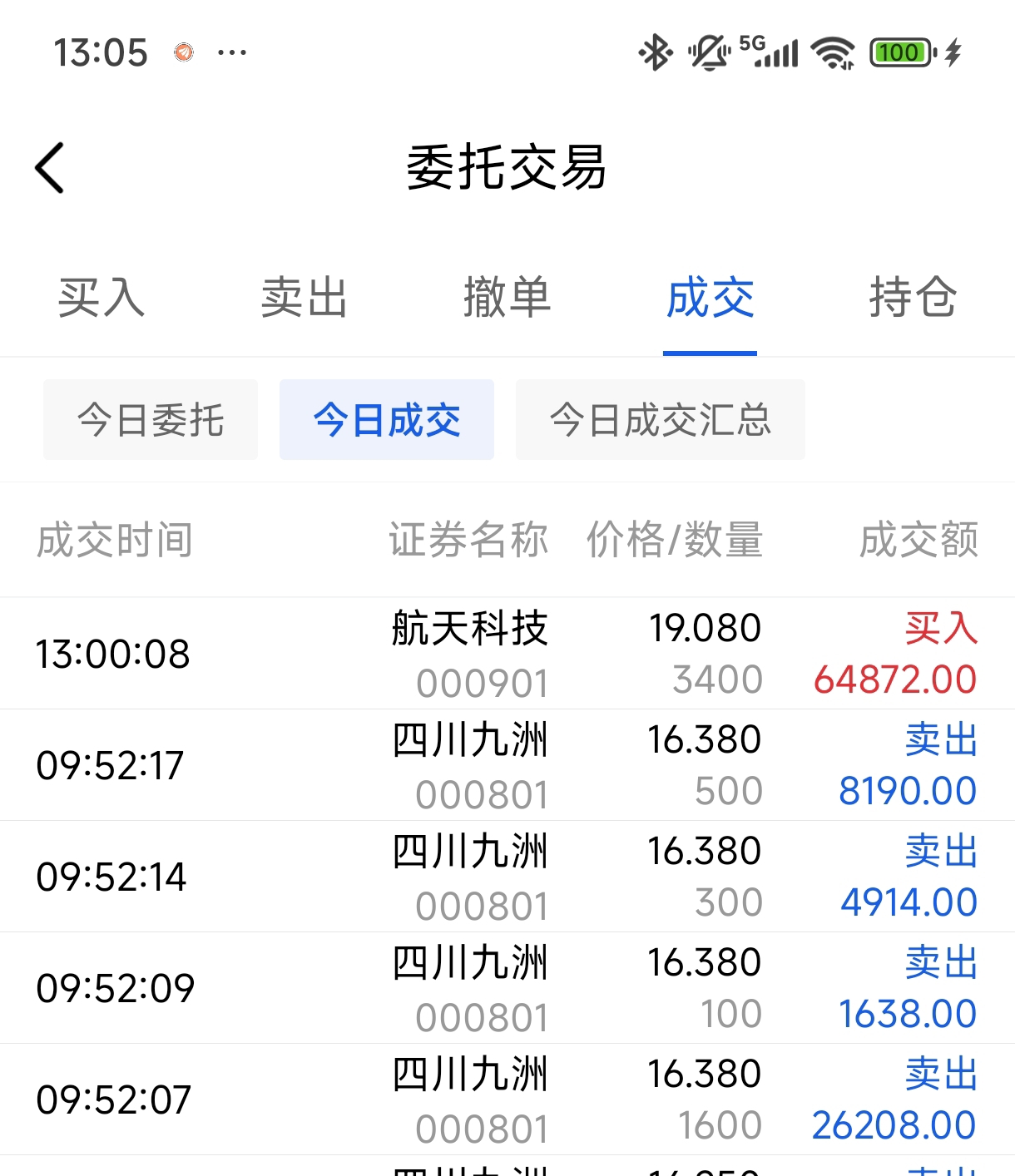 $四川九洲(SZ000801)$ 你个杂毛,还不如航天科技给我的快感,上午继续减仓,中午进了航天科技,再不涨我就清仓了。看看人家主力再看看你……