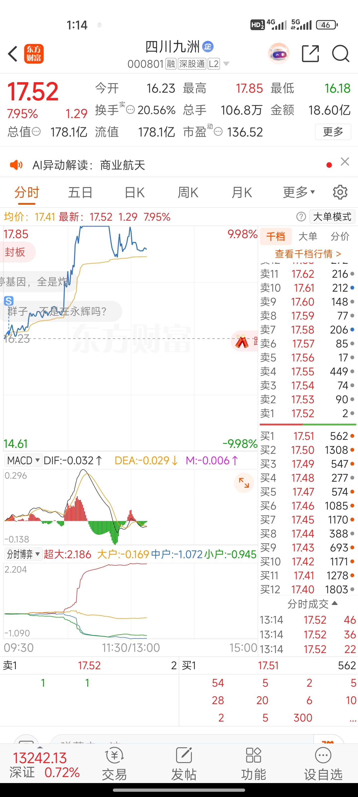 $四川九洲(SZ000801)$ 兄弟们,祝你们赚大钱。