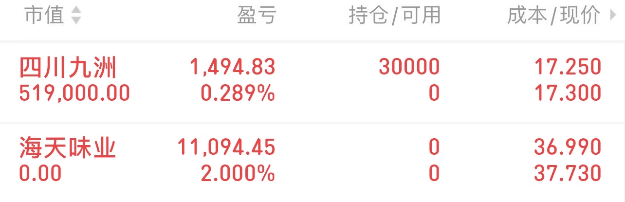 $四川九洲(SZ000801)$ $海天味业(SH603288)$ 入了,明天冲高就走