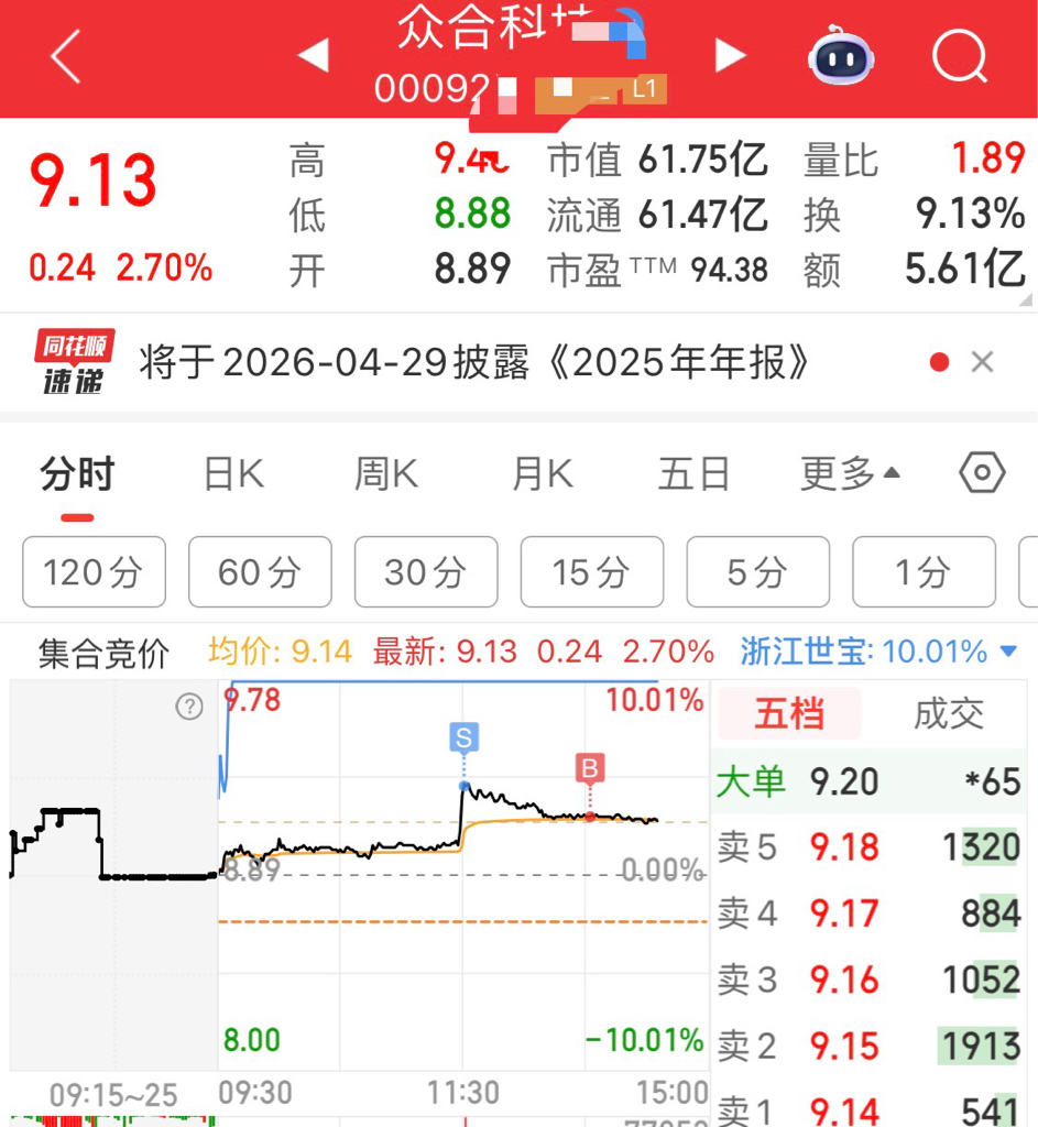 专注做午后埋伏首板!!!拿了九洲,金通,上工继续加仓,众合做踢,出了积成。