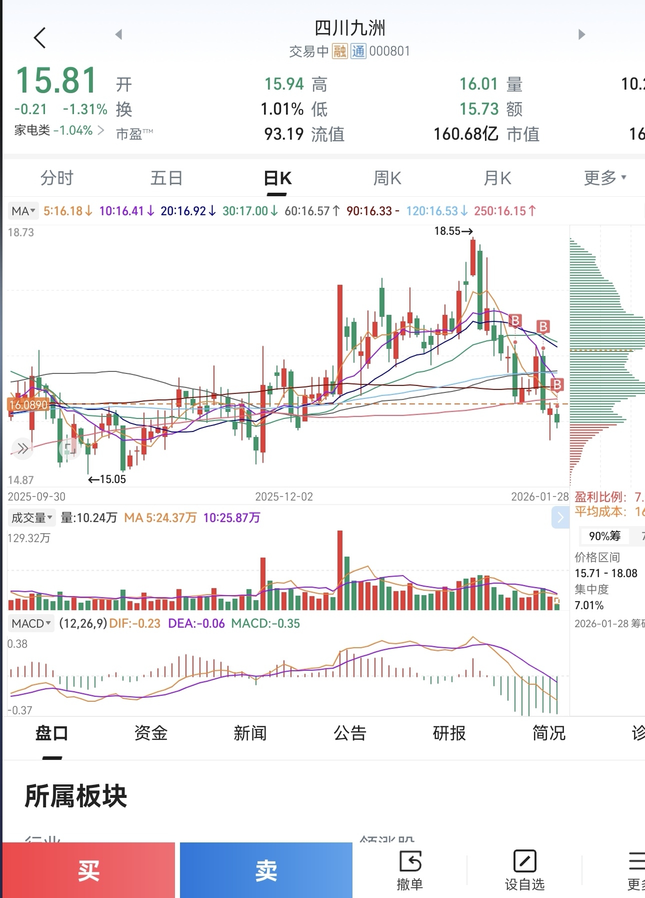 $四川九洲(SZ000801)$ 低位布局,目前下跌企稳迹象,没有出现更积极的右侧买点,分批低吸为主,不必大仓位进去太早。
