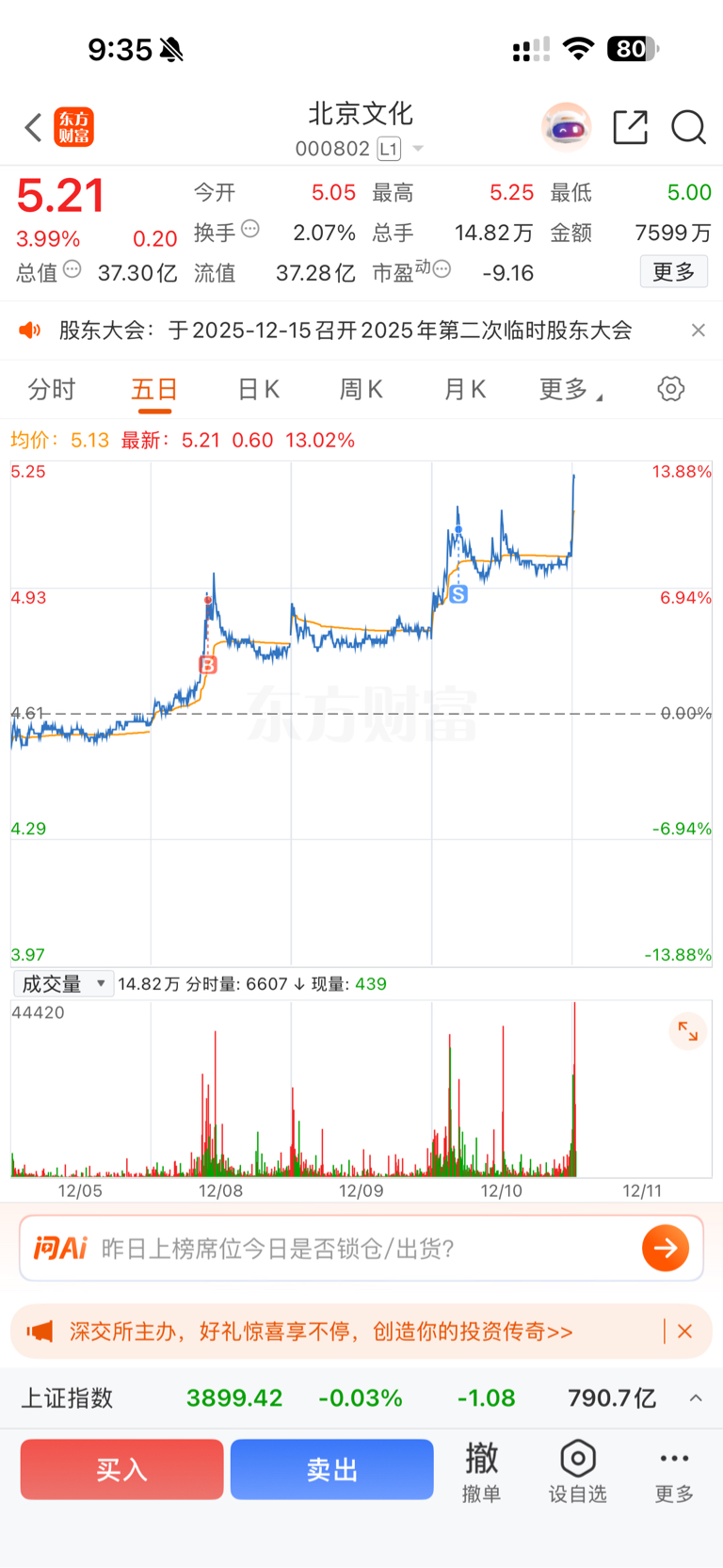$北京文化(SZ000802)$ 难受啊没命富贵
