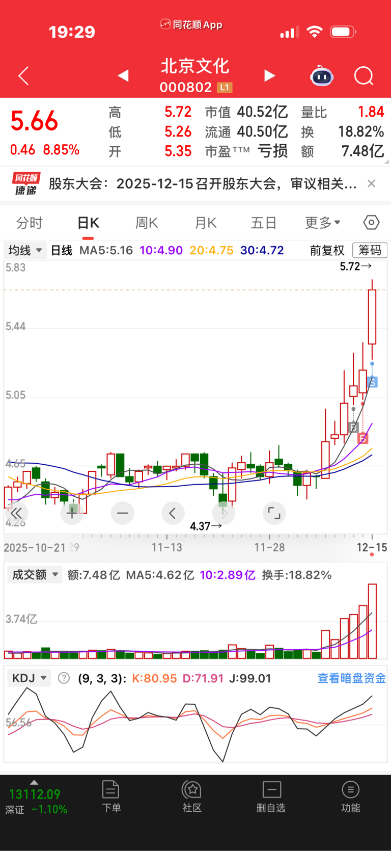 $北京文化(SZ000802)$ 明天有机会买回来吗