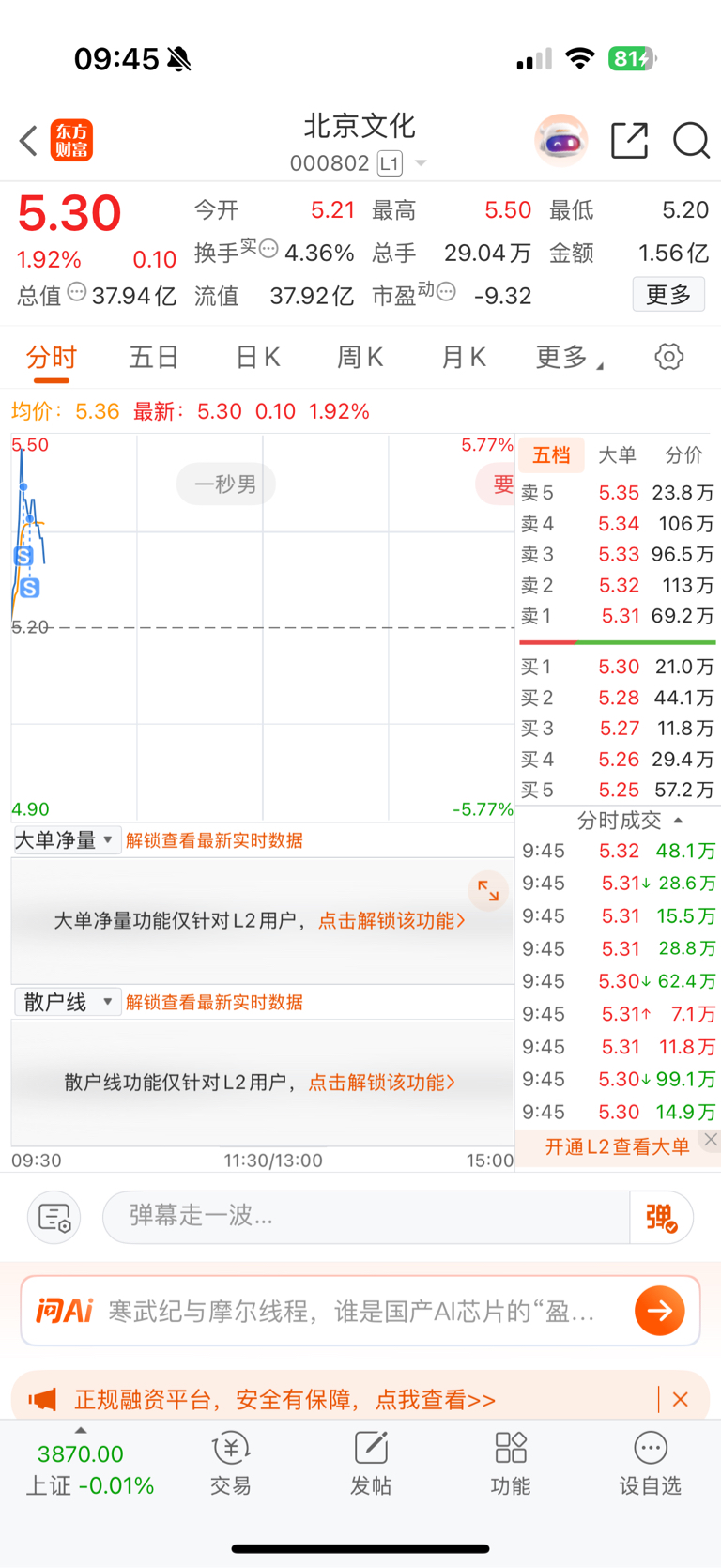 $北京文化(SZ000802)$ 撤了,这票,免得担心受怕