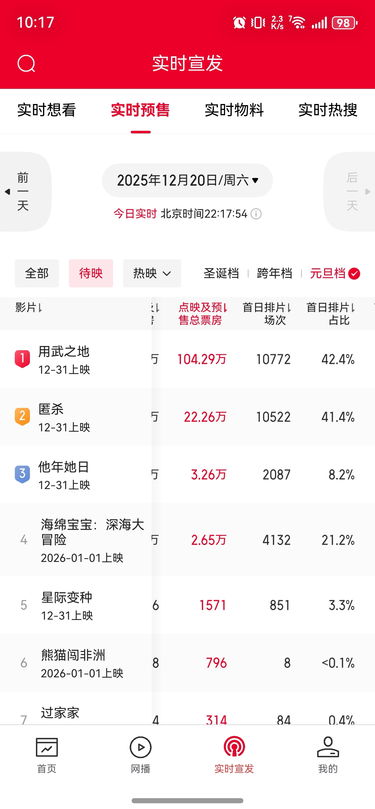 元旦预售第一了,感谢烂片助攻,哈哈。