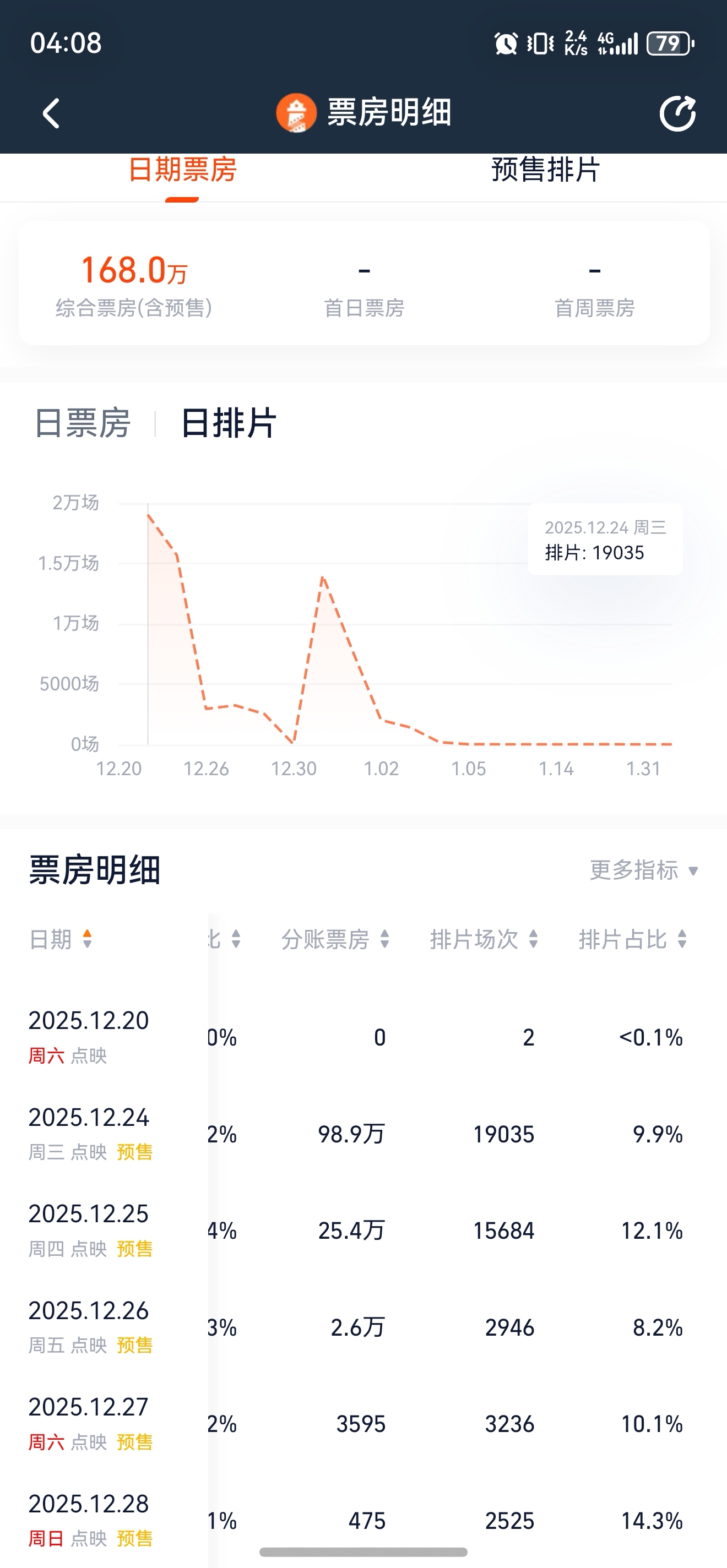 $北京文化(SZ000802)$ 点映排片加到19000场了。把阿凡达的排片吃了不少,票房过不了500万的话就完蛋了