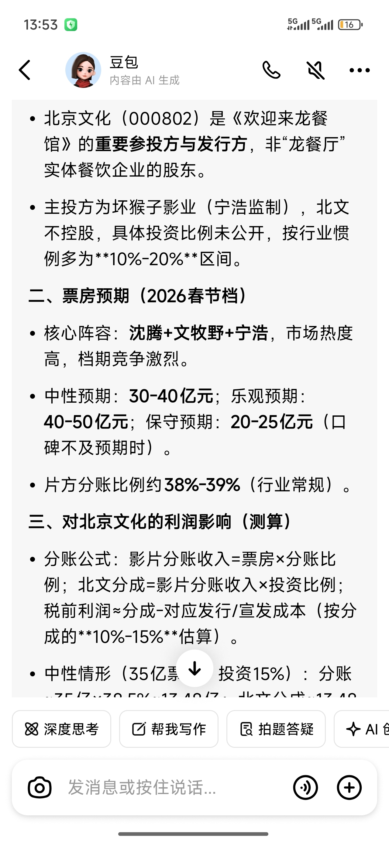 $北京文化(SZ000802)$ 用武之地不行了,这个行吗?能复制光线传媒吗?