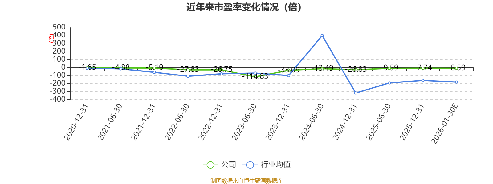 中证智能财讯北京文化(000802)1月30日晚间披露2025年度业绩预告,预计2025年实现营业收入3.1亿元至3.6亿元;归母净利润亏损3.5亿元至4.1亿元,上年同期亏损1.56亿元;扣非净利润亏损3.25亿元至3.85亿元,上年同期亏损1.52亿元;基本每股收益-0.4889元/股至-0.5727元/股。以最新收盘价计算,市净率(LF)约4.16倍,市销率(TTM)约9.68倍。