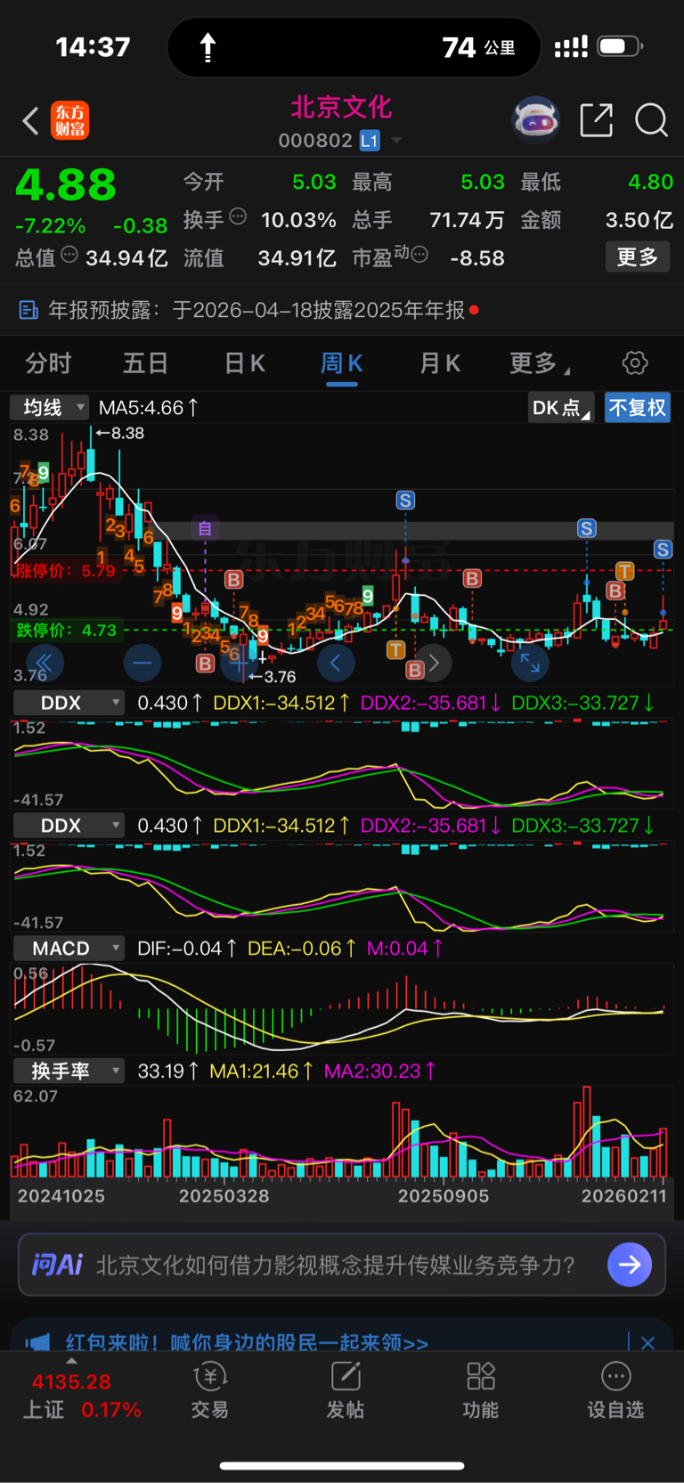 $北京文化(SZ000802)$ 波段选手目前38个点嘿嘿