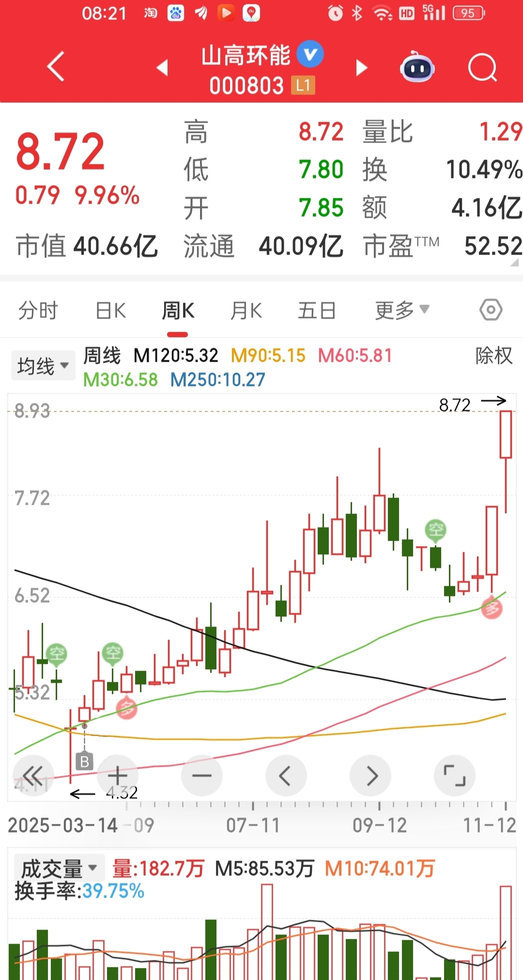 $山高环能(SZ000803)$ 四月九日暴跌买的长线,守了7个月,2百多天,我容易吗?继续涨就拿,否则,本周选择出局