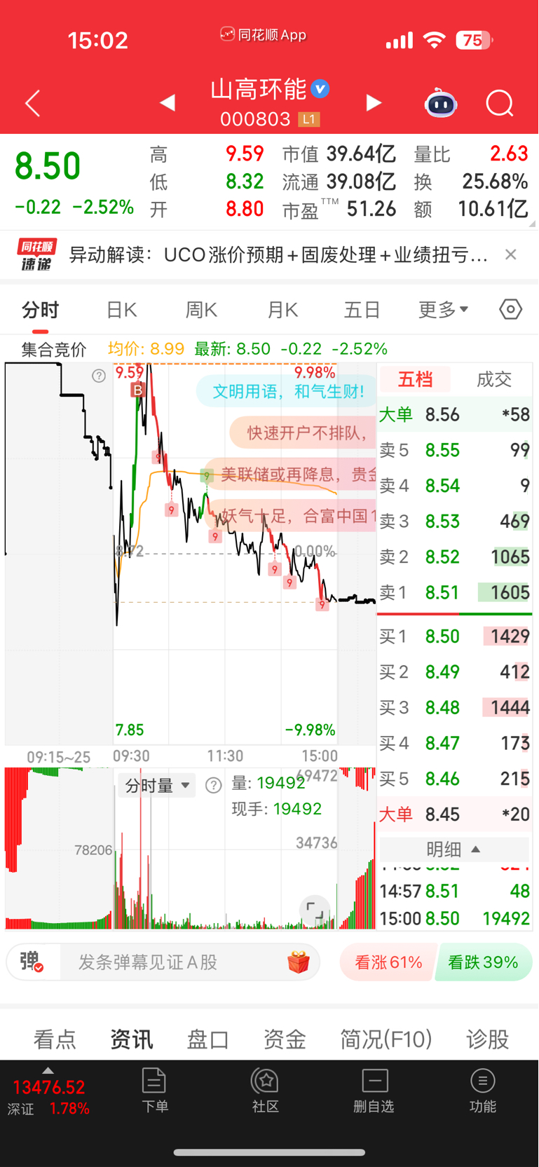 $山高环能(SZ000803)$ 你太牛逼了 这个票 第一次打板的票能炸成这样 谢谢你主力 让我吃个教训