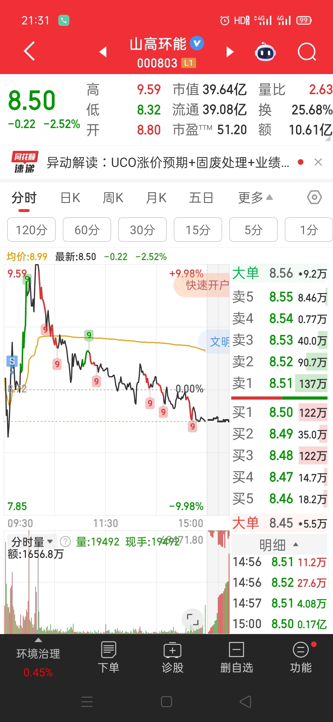 很少追涨,一般都喜欢水下低吸,今天虽然没有卖的很好,至少早上没有卖在水下,昨天没