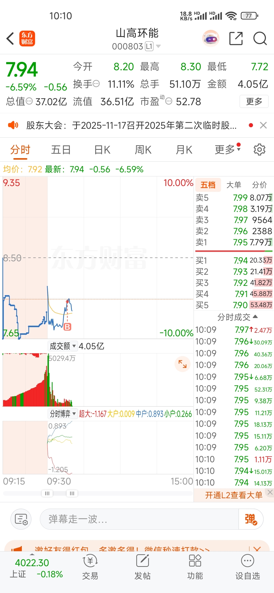 $山高环能(SZ000803)$ 买了两手 都给我挂高处了吗 昨天的资金不就了吗