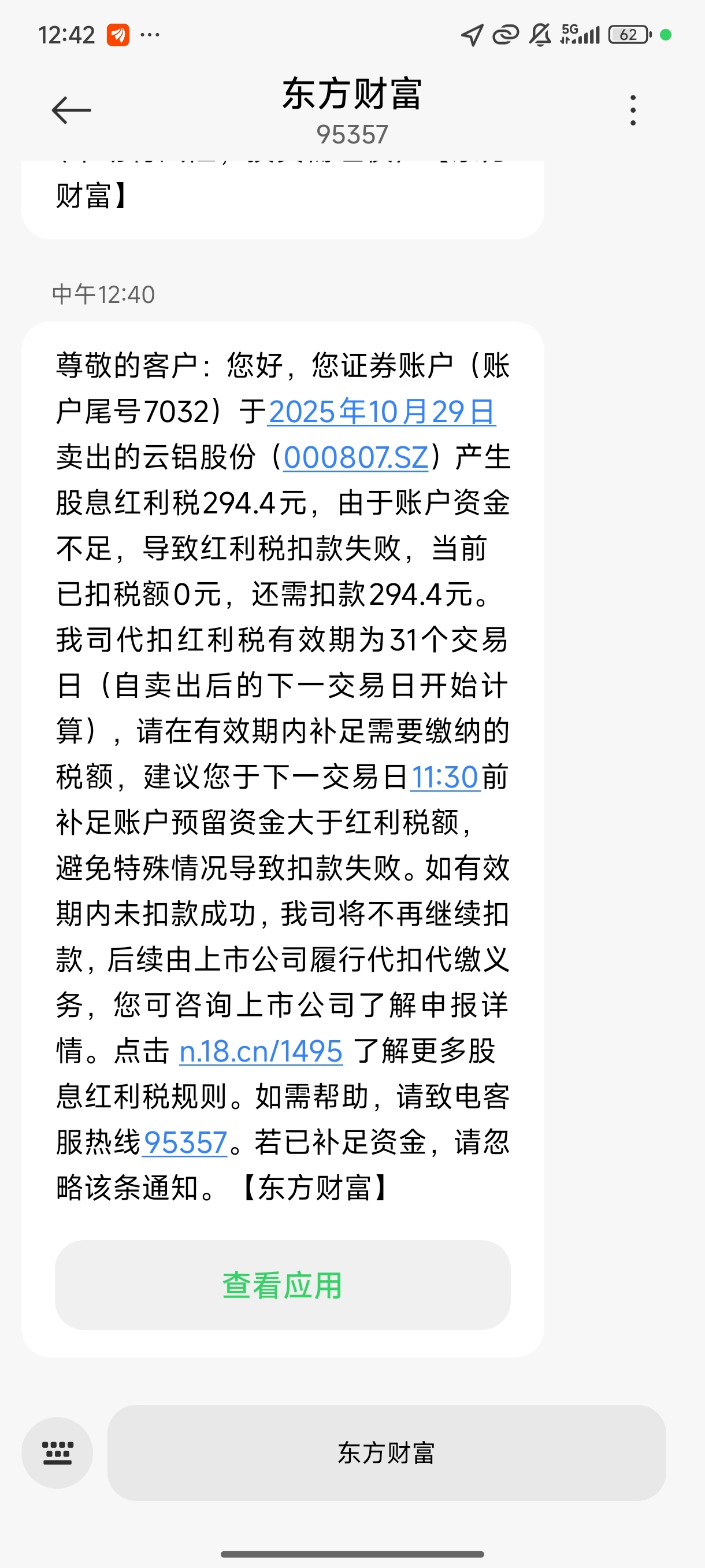 $云铝股份(SZ000807)$ 1500的分红要扣这么多钱。。离谱
