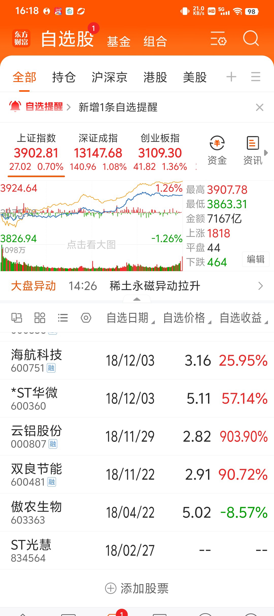 $云铝股份(SZ000807)$ 从18年就看着你涨,一直没买,这多年买这个买那个忙的不得了,现在还是亏着的,