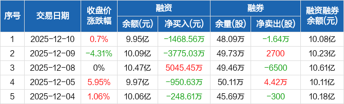 云铝股份:融资净偿还1468.56万元,融资余额9.95亿元(12-10)