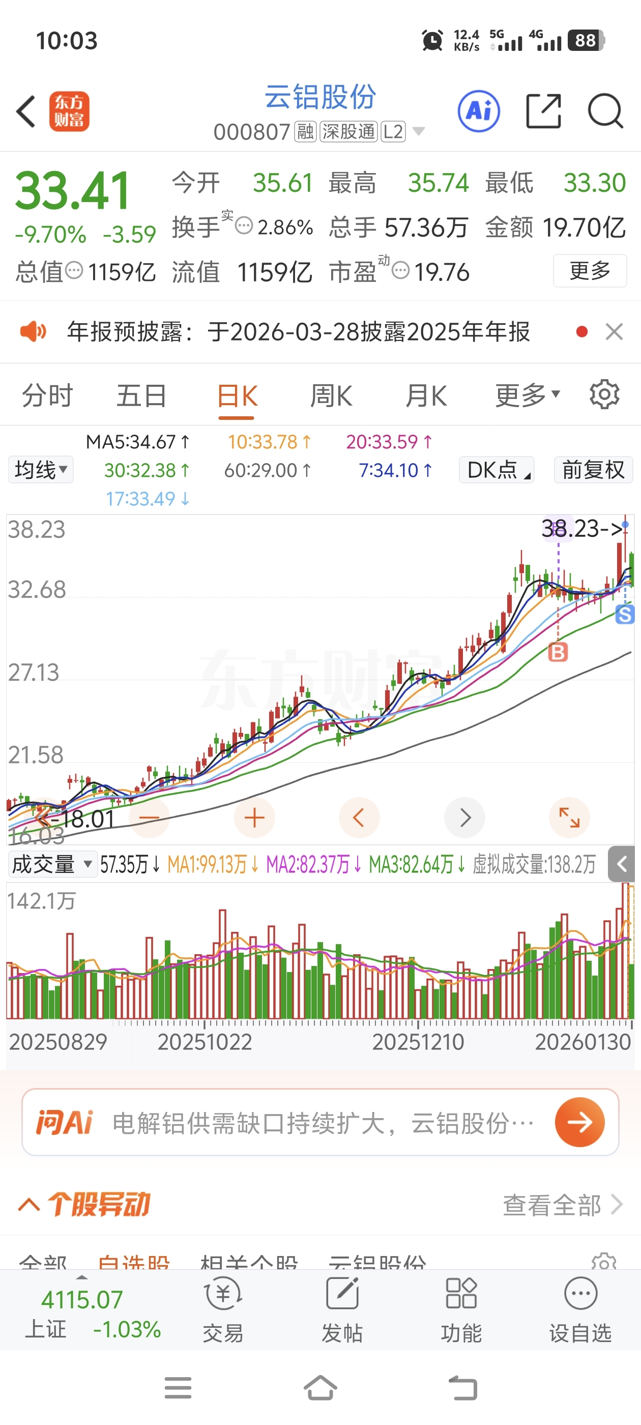 $云铝股份(SZ000807)$ 昨天精准逃顶了