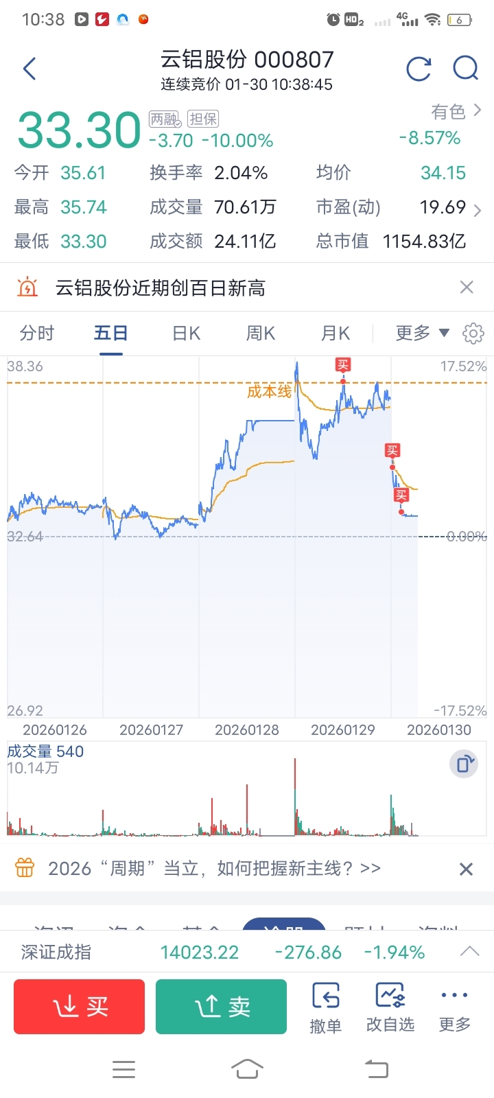 $云铝股份(SZ000807)$ 昨天下午进场,今天被金银铜带崩了,可以说被板块错杀了