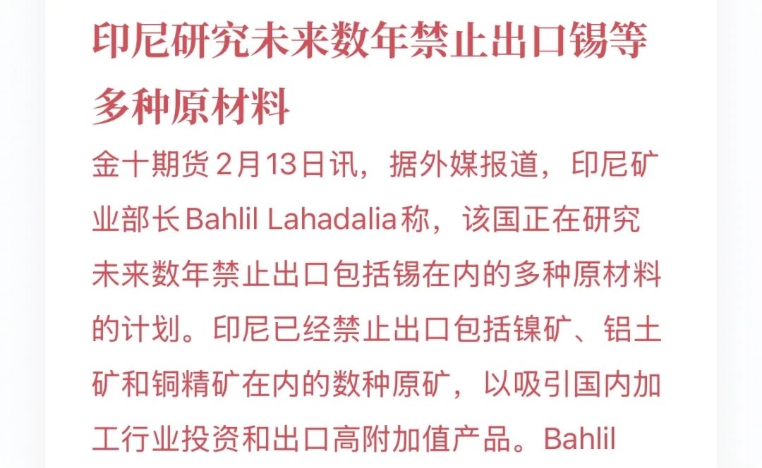 印尼真的会禁止出口包括锡在内的多种原材料吗?