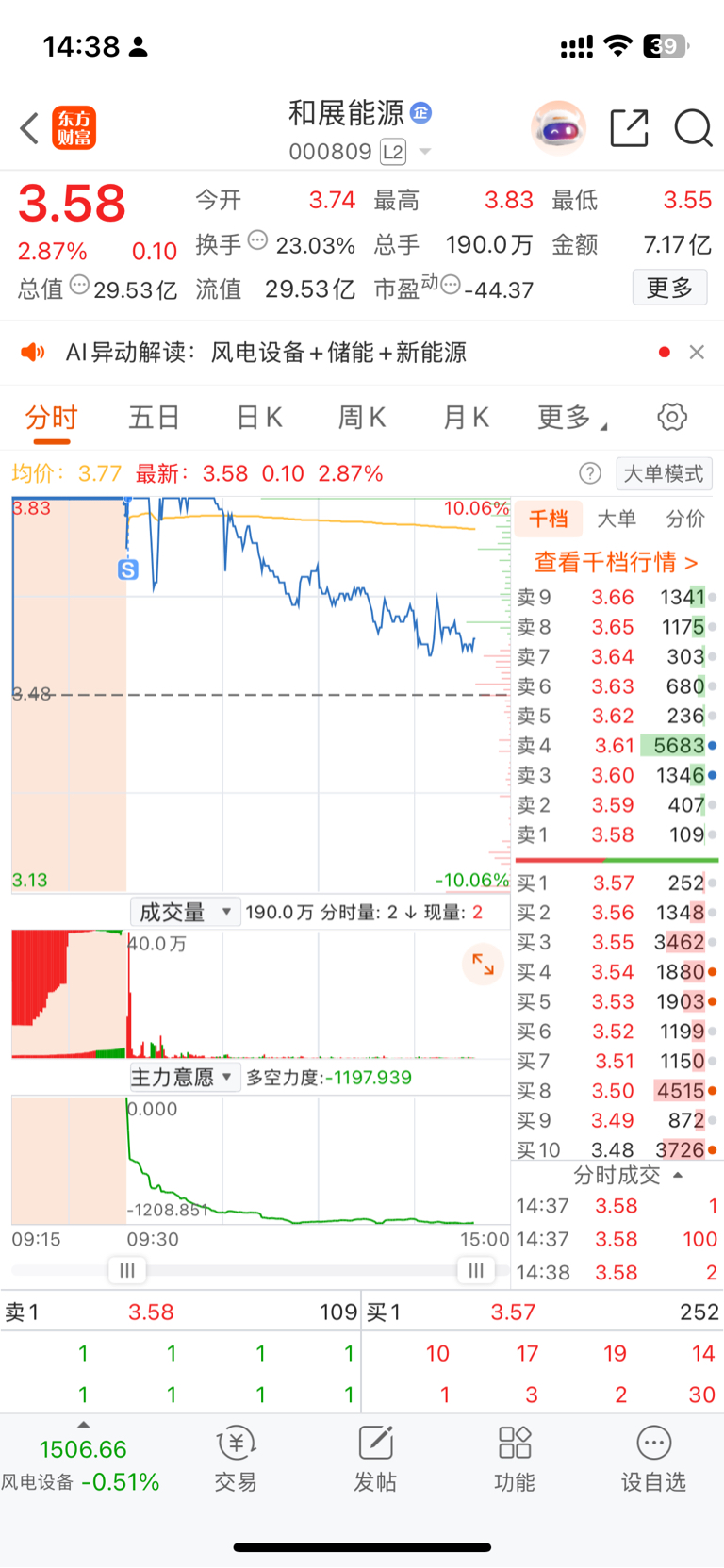$和展能源(SZ000809)$ 虽然开盘秒封板,可惜封单不够(看似很强,实则装腔作势),毫不犹豫板上秒出