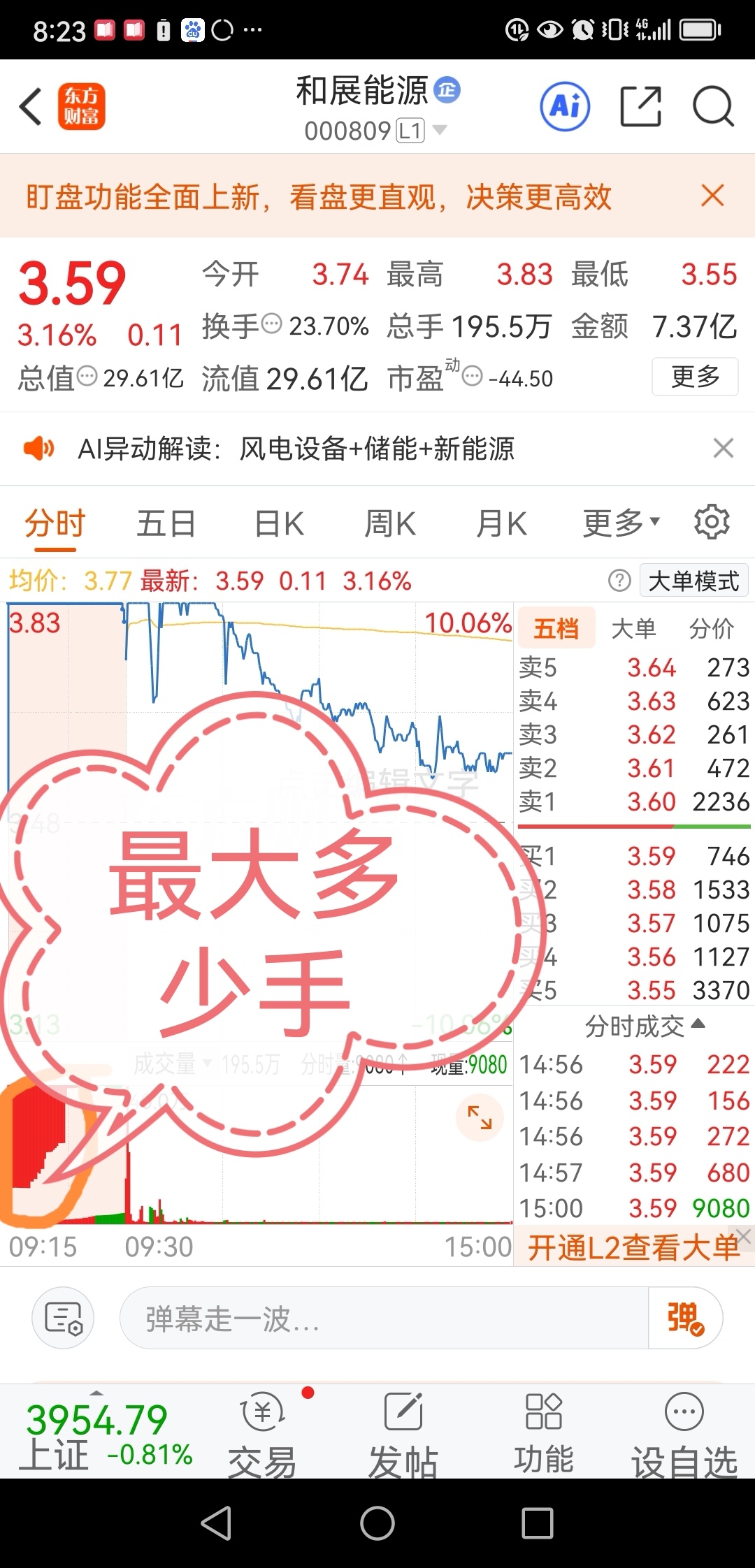 $和展能源(SZ000809)$ 请问大哥们这个集合竞价最大多少手,现在能看的出来吗