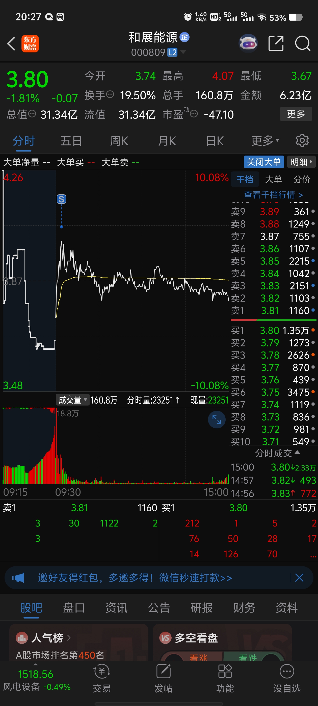 $和展能源(SZ000809)$ 走了,别问我为什么