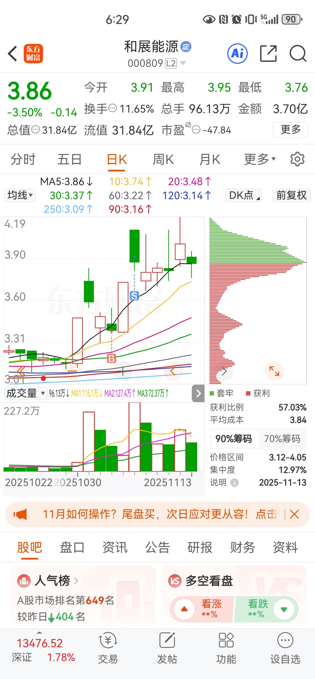 $和展能源(SZ000809)$ 还以为卖飞了,一周没看,还在原地踏步