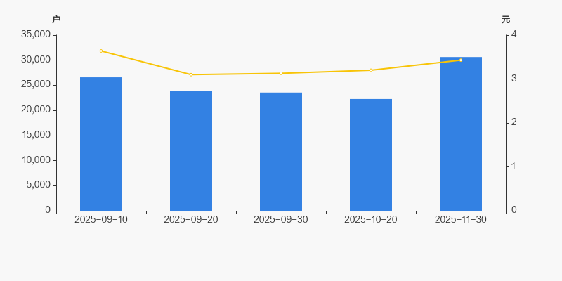 2025年9月10日至今,公司股东户数显著增长,区间涨幅为15.20%。2025年9月10日至2025年11月30日区间股价下降5.77%。