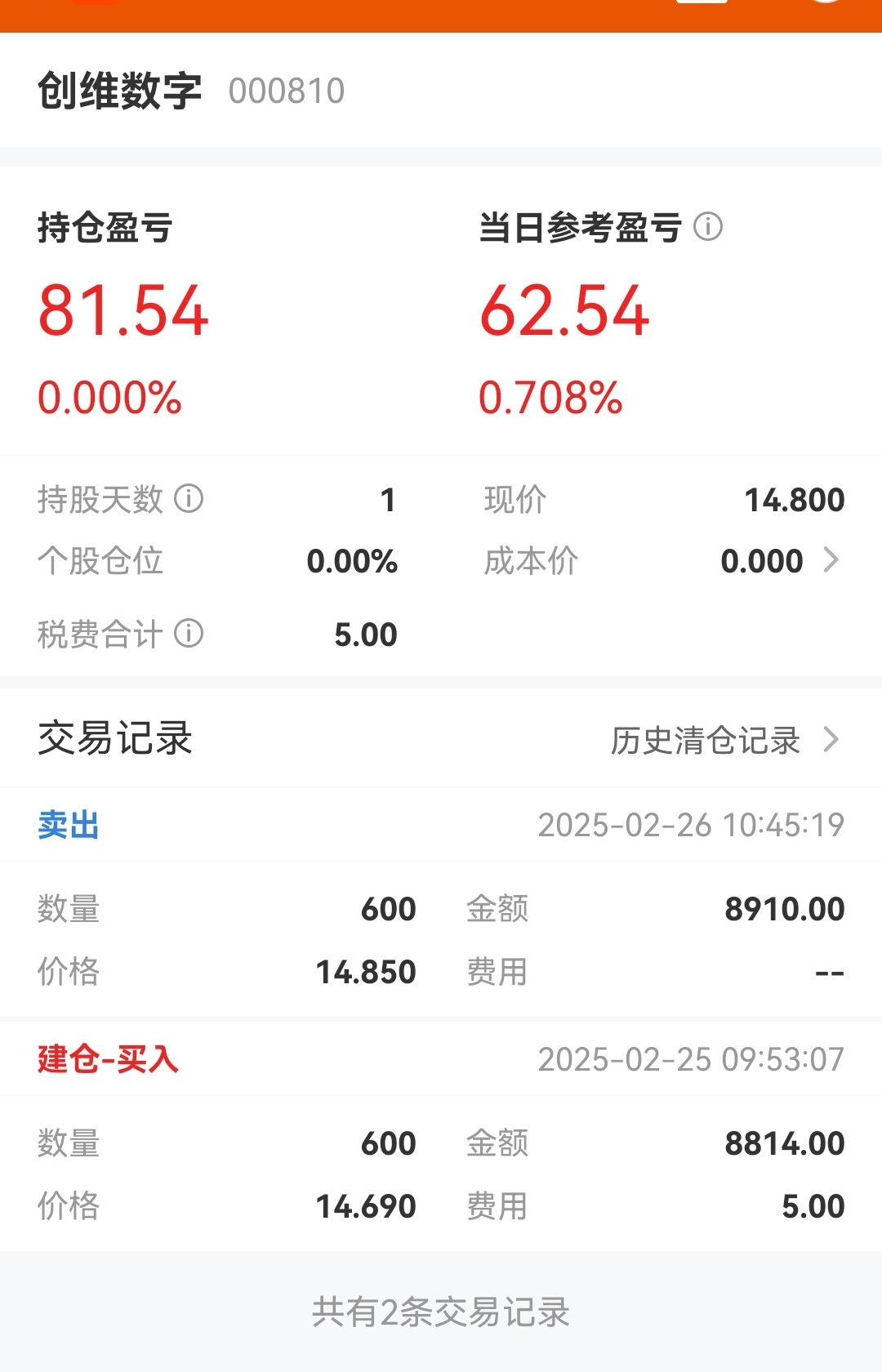 $创维数字(SZ000810)$ 今天卖飞了,希望明天能在14.40附近接回来。