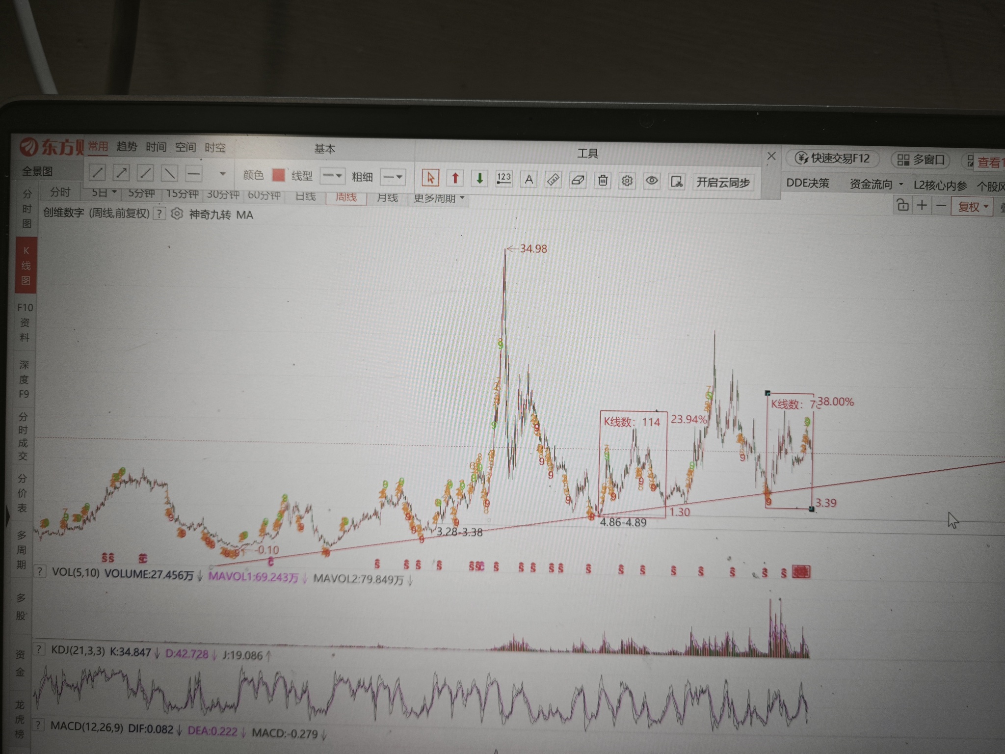 $创维数字(SZ000810)$ 历史不会重复,但是有可能会极为相似,根据底部大趋势线,结合前面k线结构,这几天的上涨只是下跌途中的中距,理应回调到大约9.27元才能止跌,