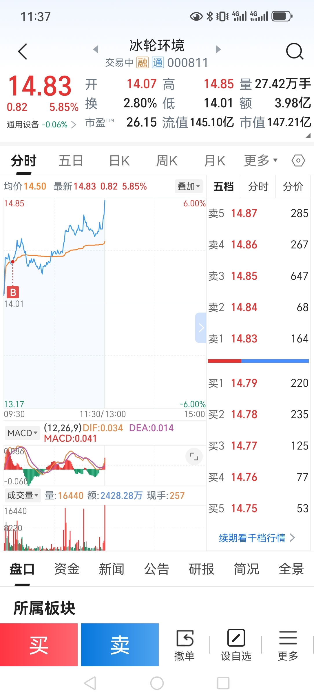 昨天买的4个股:格尔继续涨停板板上卖了、瑞达期货昨天开板今天以为没有预期卖飞了、澳弘和济民和自己预想的一样不赚不亏走了。今天买了冰轮环境、电子城、星网宇达,目前没有一个涨停,期待下午表现。今天结束,卖完买完,感恩平潭发展,5个板了