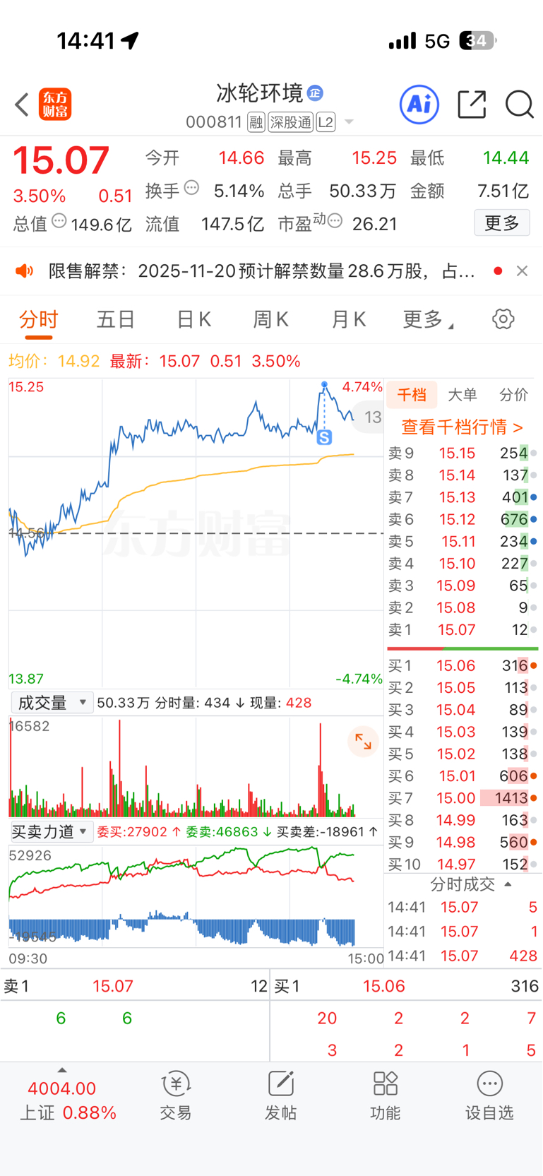 $冰轮环境(SZ000811)$ 不知道做的对不对,万一明天一个大长腿