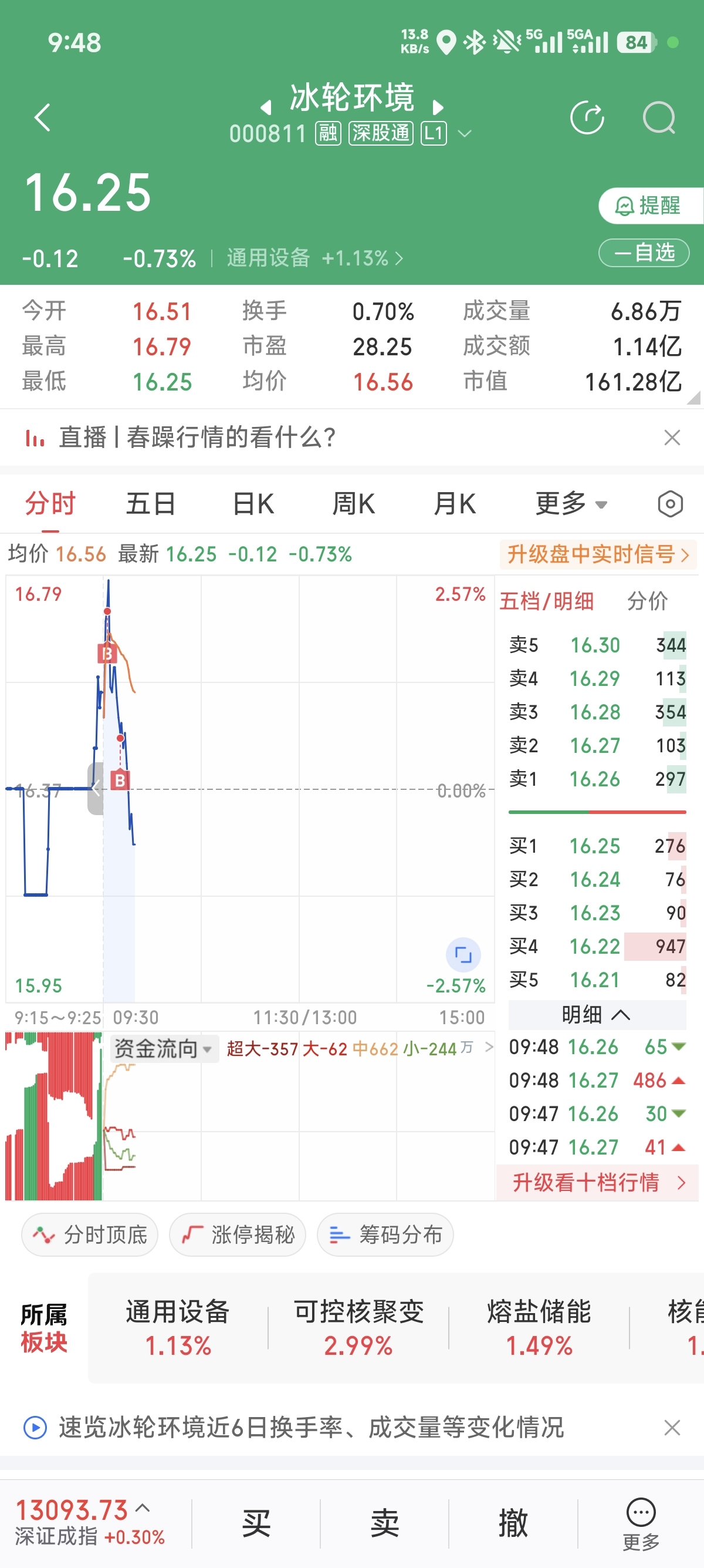 $冰轮环境(SZ000811)$ 操作手法依然稳健!