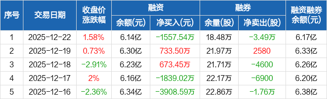 冰轮环境:融资净偿还1557.54万元,融资余额6.14亿元(12-22)