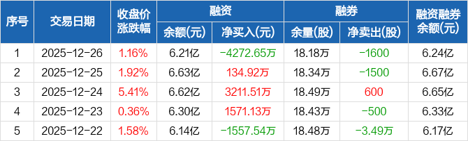 冰轮环境:融资净偿还4272.65万元,融资余额6.21亿元(12-26)