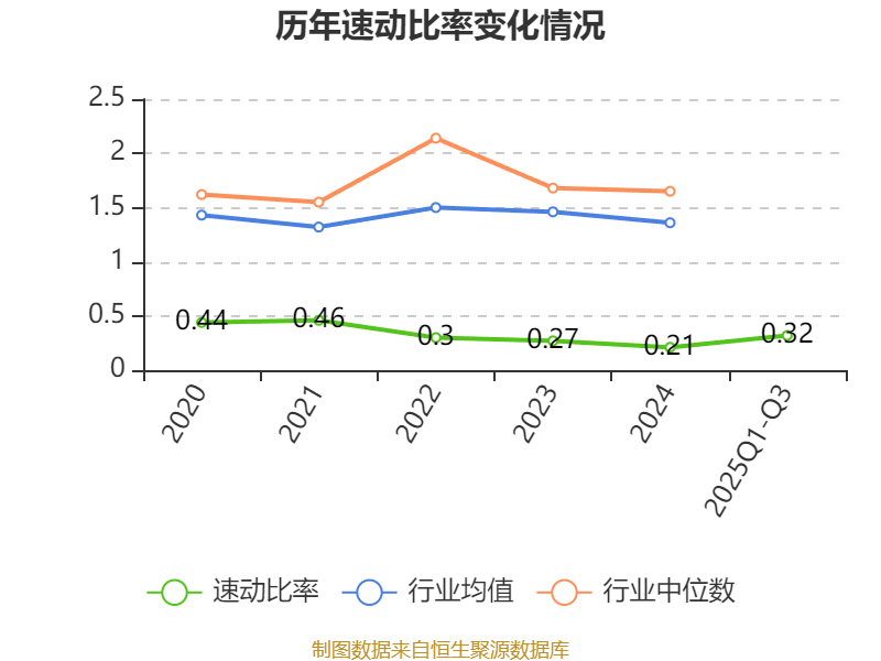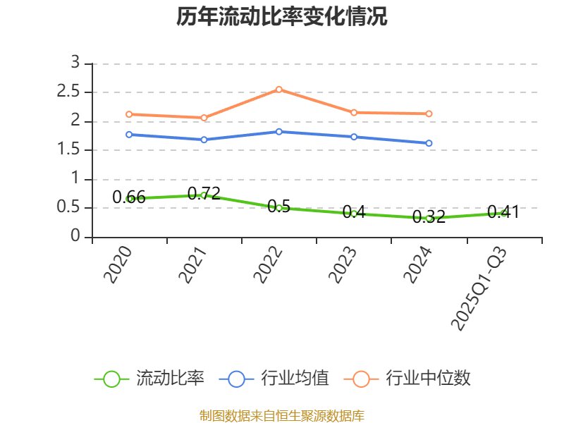 2025年前三季度,公司流动比率为0.41,速动比率为0.32。