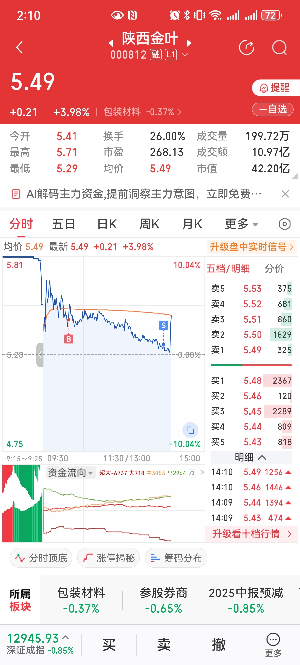 $陕西金叶(SZ000812)$ 吐的了