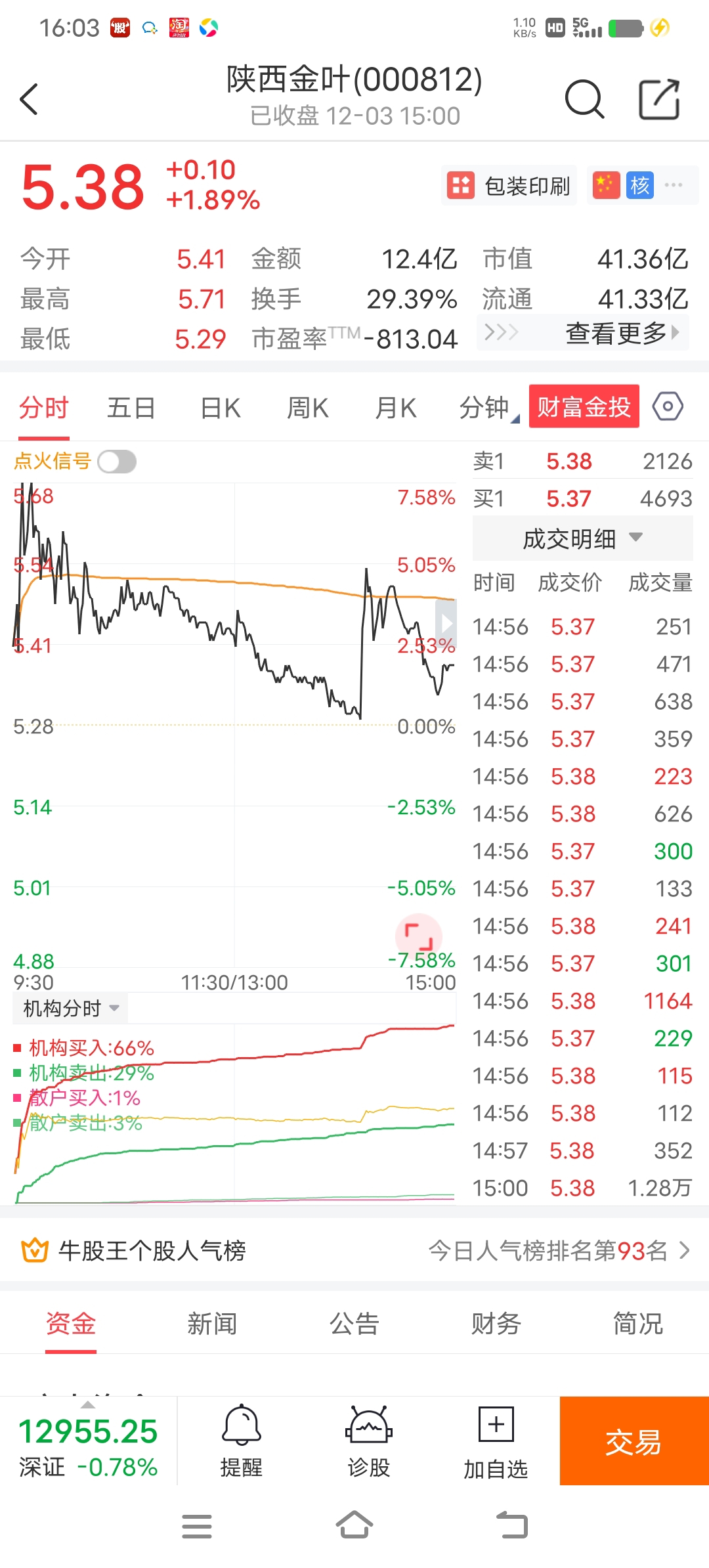 $陕西金叶(SZ000812)$ 不要叫,机构今天吸筹,没卖。一个个吓死。
