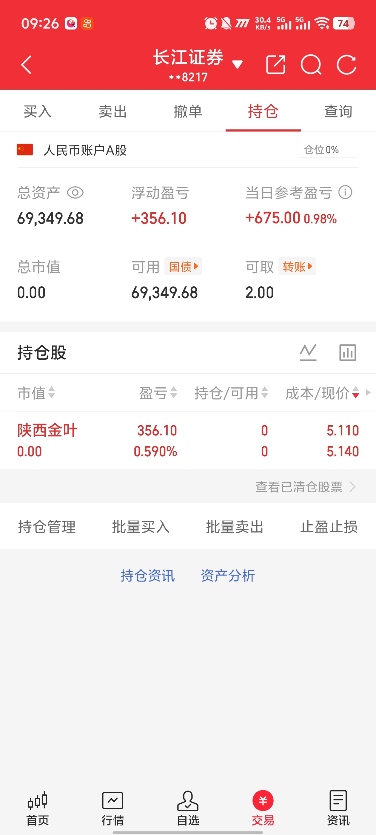 $陕西金叶(SZ000812)$ 尾盘进一半明天加满。