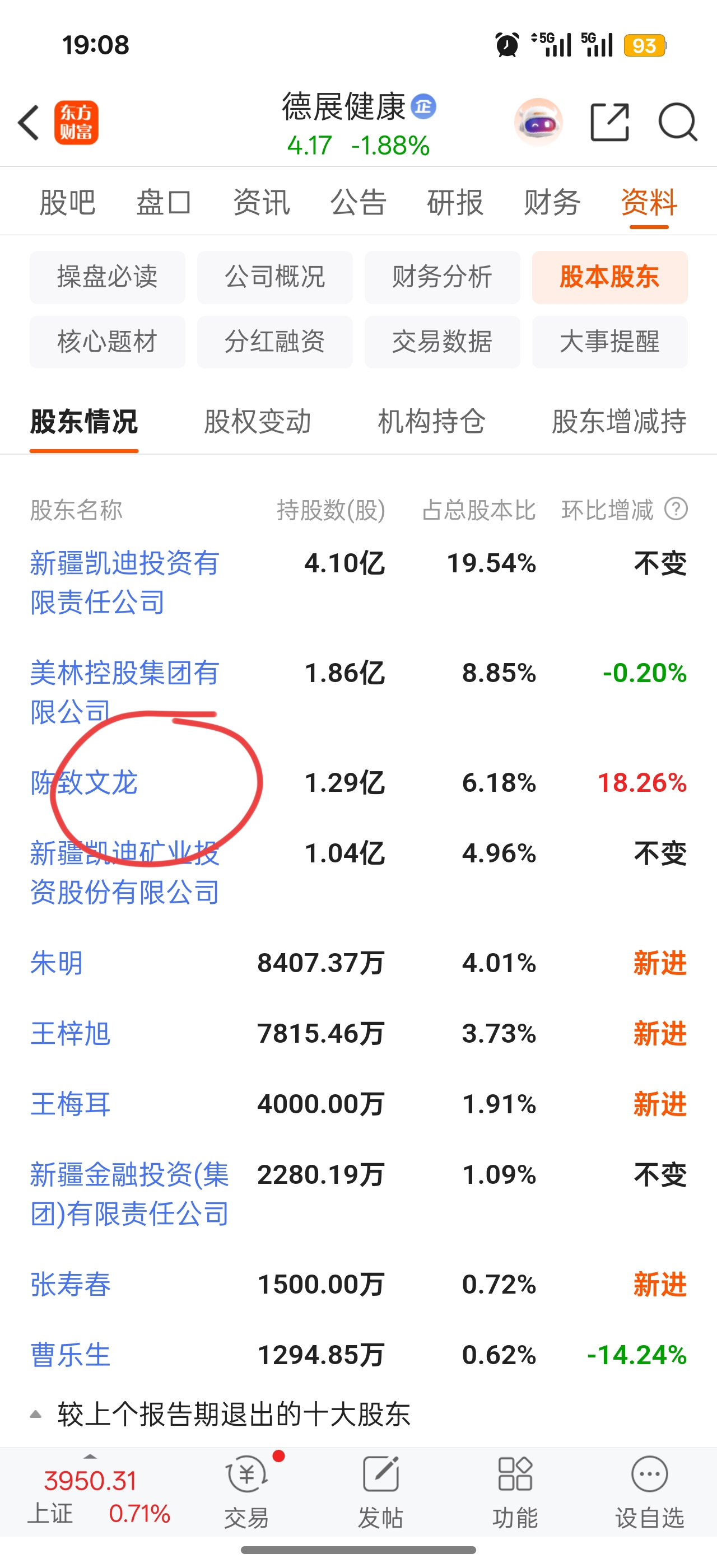$德展健康(SZ000813)$ 陈致文龙大佬眼光独到,之前在易明医药精准逃顶,短期翻了几倍了,而且只买了200万股,这次股东大会有加仓德展健康一共1.29亿,他本人也是北京人,离东方略也很近,他如果没有消息不会举牌加仓德展健康重仓股,还有北京国资也不会在去年投资5000万东方略。